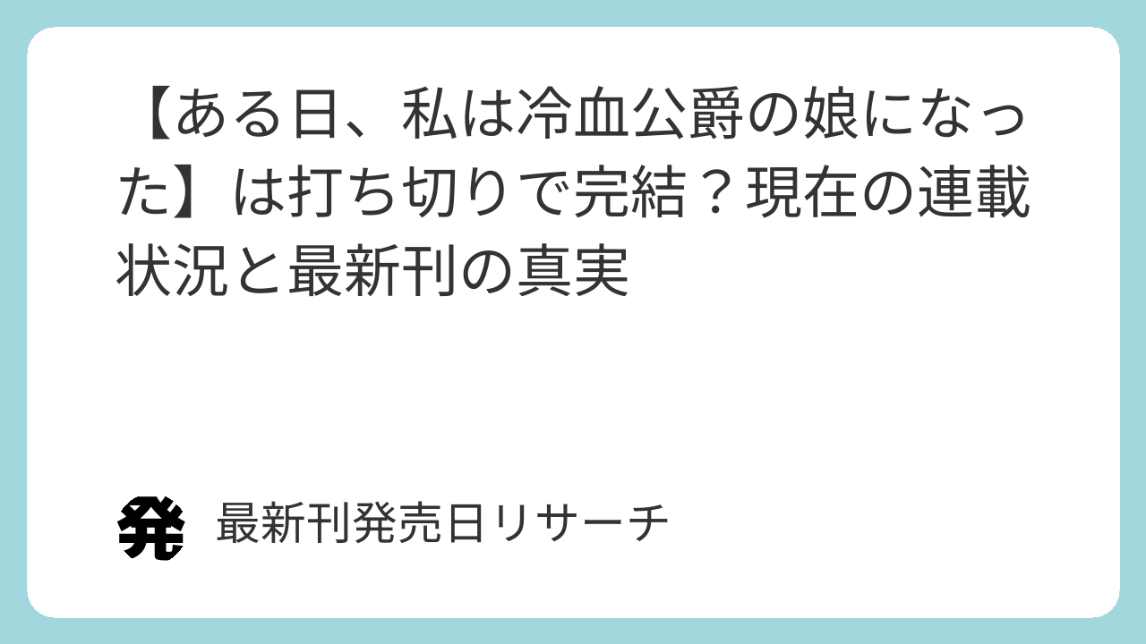 【ある日、私は冷血公爵の娘になった】は打ち切りで完結?現在の連載状況と最新刊の真実