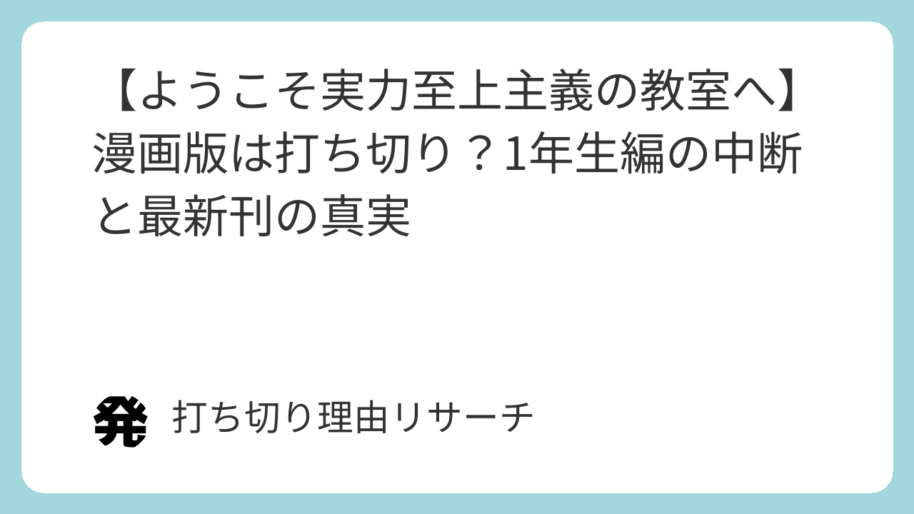 『ようこそ実力至上主義の教室へ』漫画版が打ち切りと噂される理由