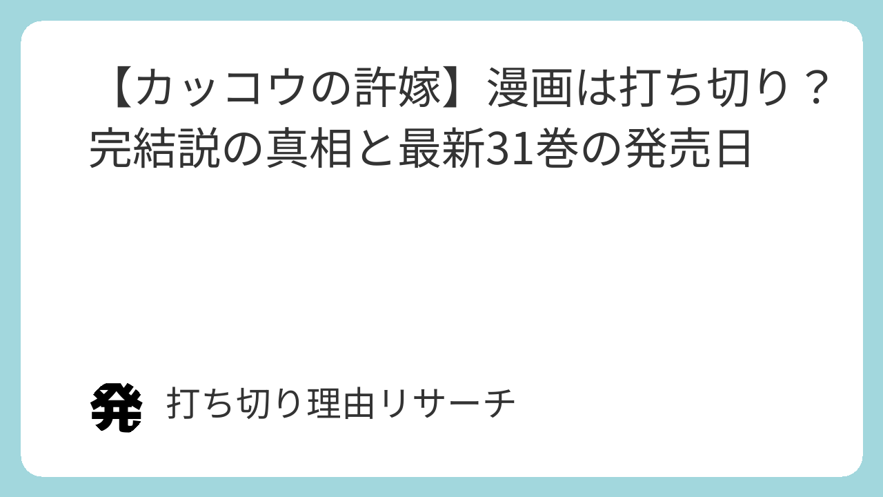 【カッコウの許嫁】漫画は打ち切り?完結説の真相と最新31巻の発売日