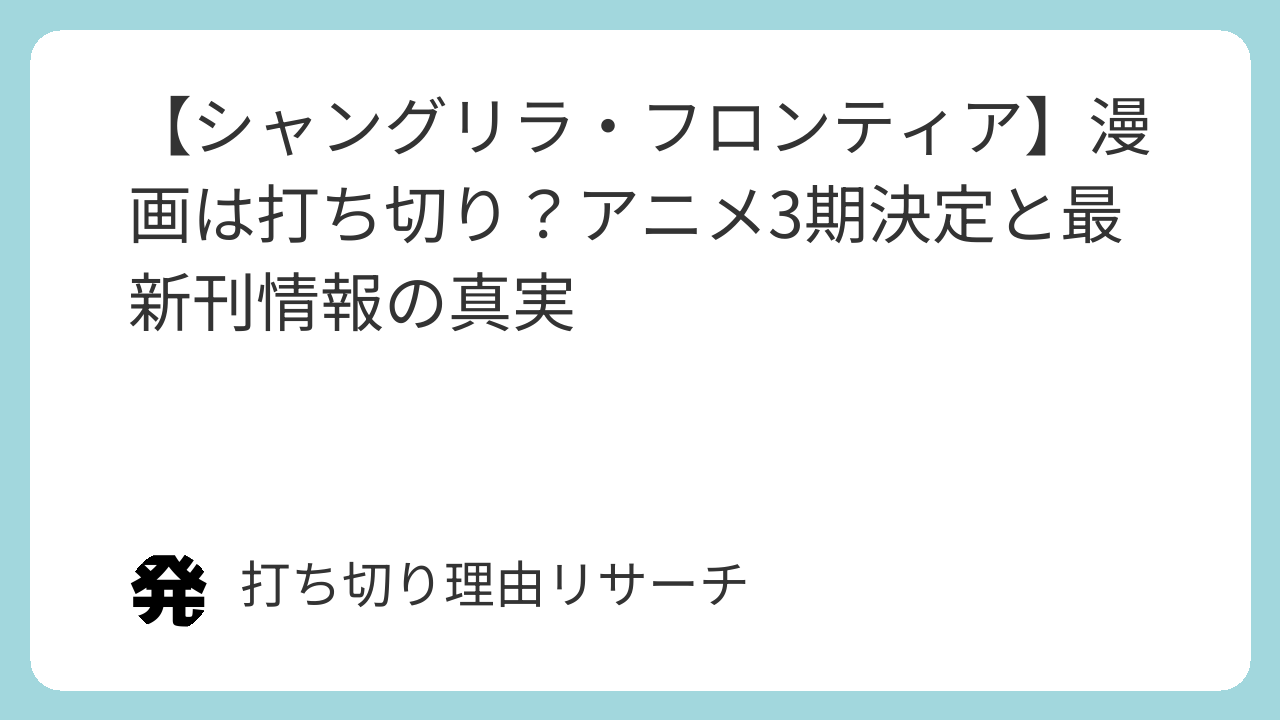 『シャングリラ・フロンティア』は打ち切りではなく、アニメ3期も決定している超人気作です。