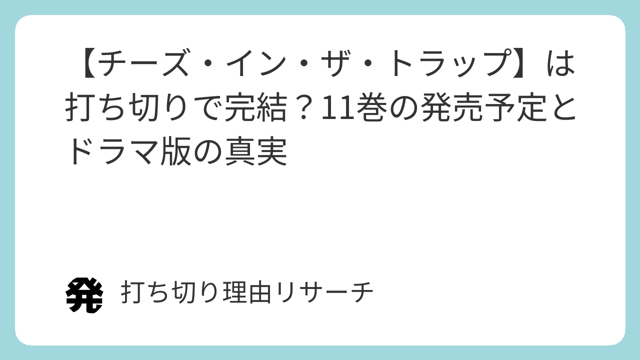 【チーズ・イン・ザ・トラップ】は打ち切りで完結?11巻の発売予定とドラマ版の真実