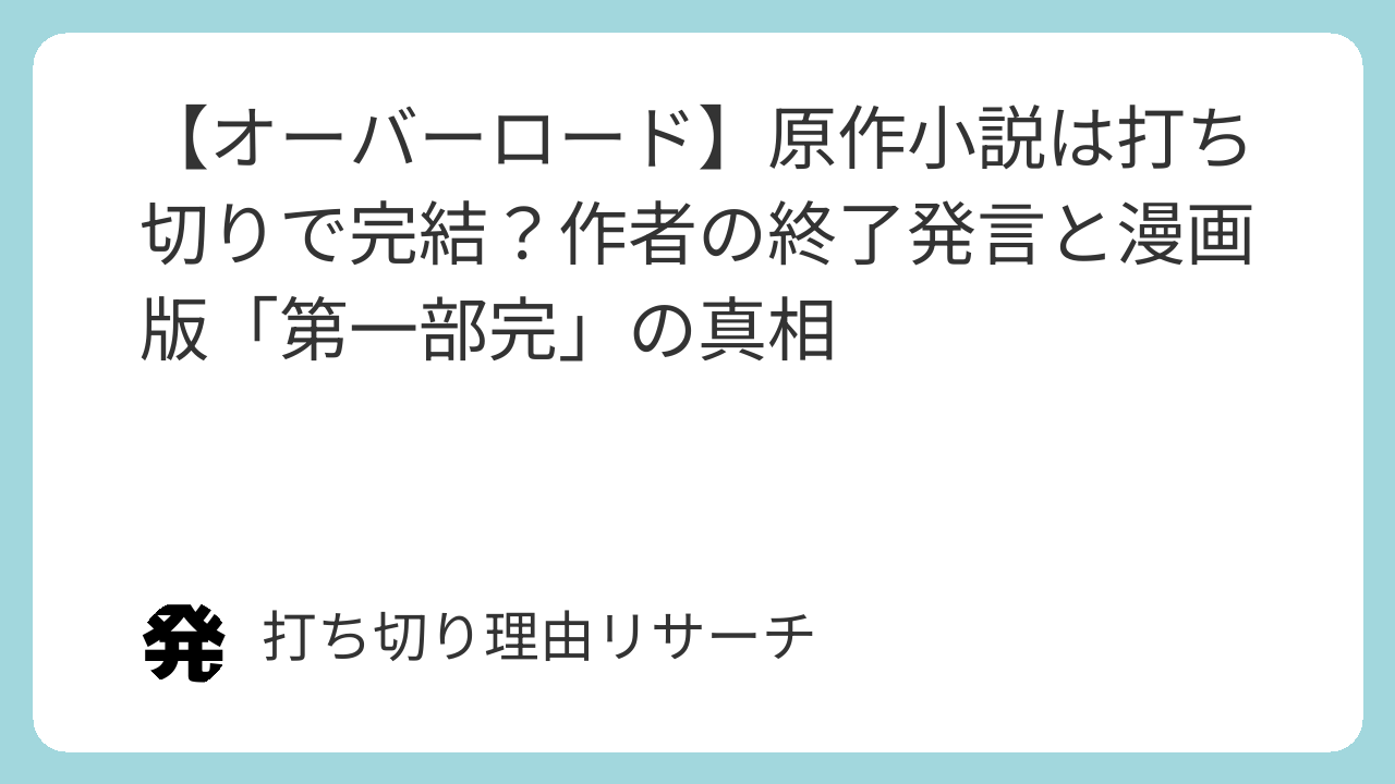 『オーバーロード』は打ち切りではなく、作者の構想に沿って完結に向かっている作品です。