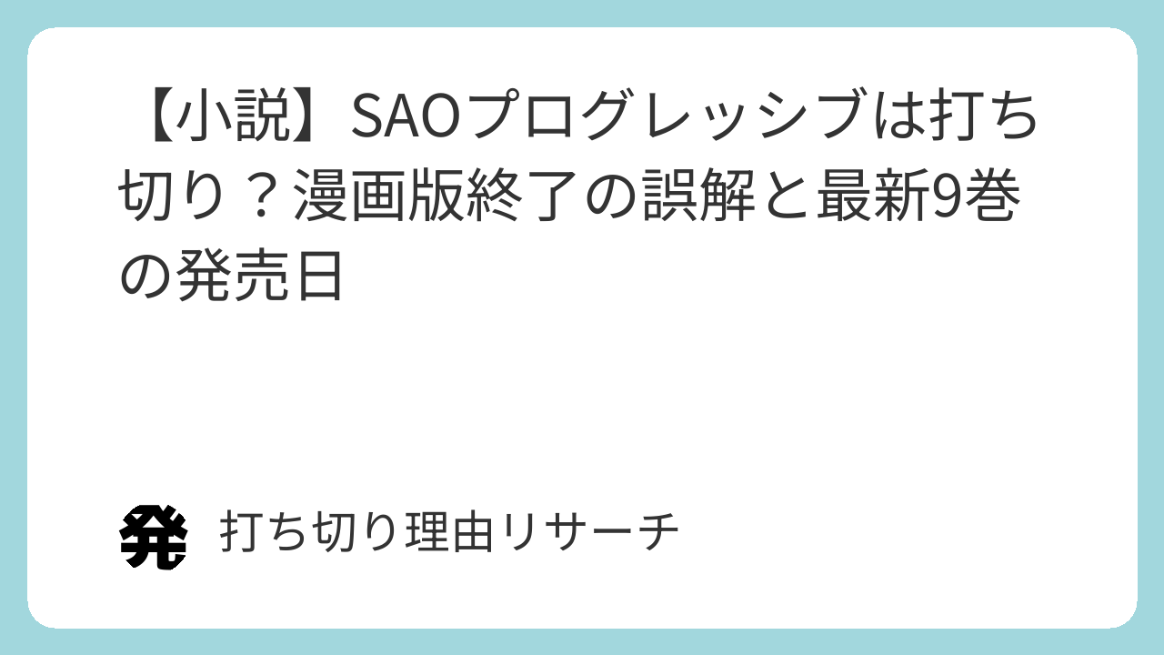 『SAOプログレッシブ』の漫画版は、フロア(階層)ごとに作画担当者が変わる特殊な形式をとっていますが、一部のシリーズが諸事情により予定より早く終了(事実上の打ち切り)となったケースがありました。