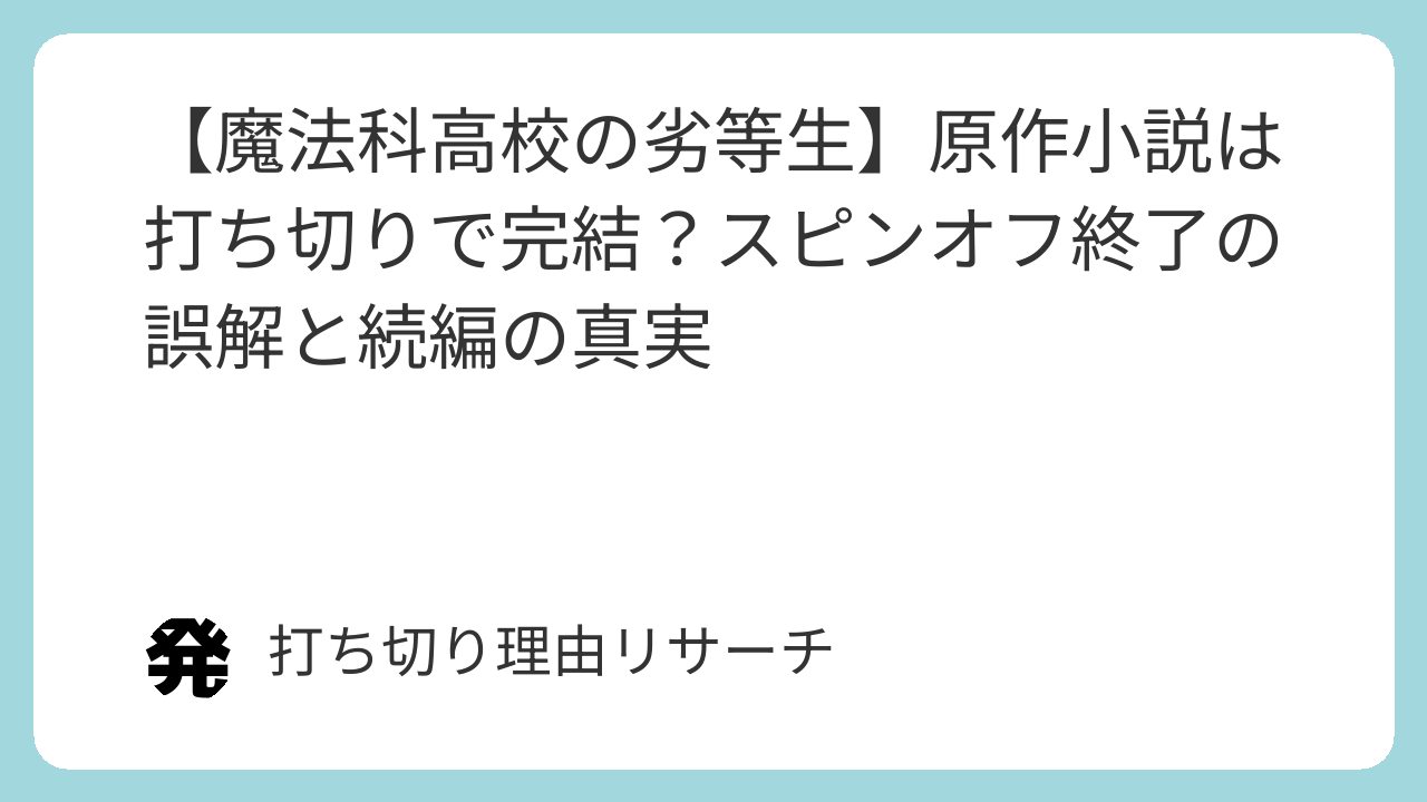 この「連載中断」というネガティブなニュースが、ネット上で情報が拡散される過程で『魔法科高校の劣等生』と結びつけられ、作品全体への不安材料として噂に残ってしまったようです。
