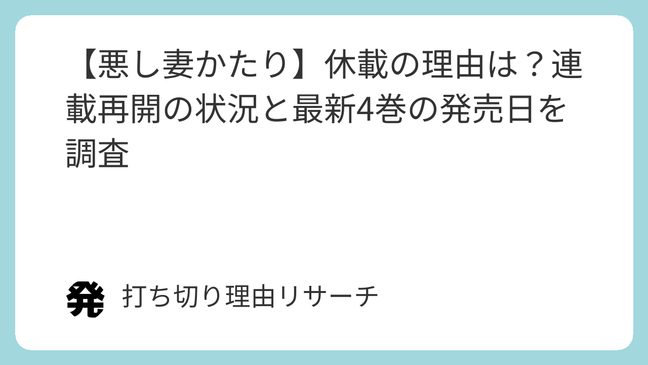 結論から申し上げますと、『悪し妻かたり』は2026年2月現在、長期休載中となっており、完結(打ち切り)の発表はされていません。
