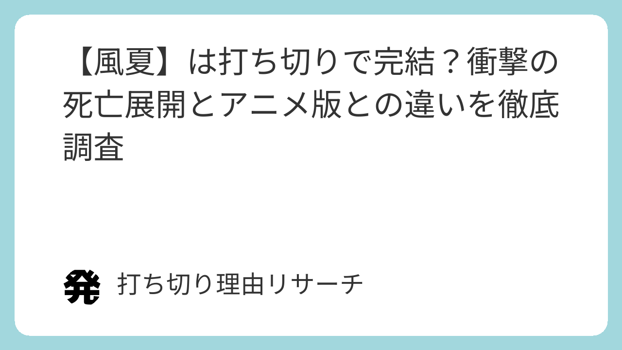 本記事では、なぜ本作に「打ち切り」という不穏な噂が立ったのか、その背景にある「衝撃の展開」や「アニメ版での大胆な改変」について詳しく解説します。
