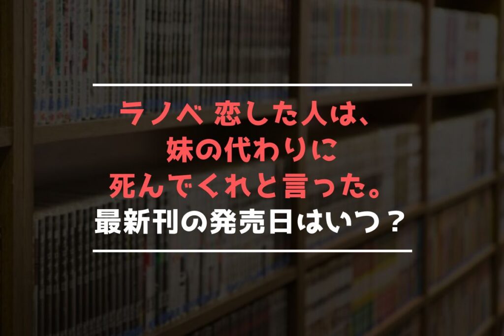 小説「恋した人は、妹の代わりに死んでくれと言った。」の最新刊である9巻の発売日予想をご紹介します。永野水貴による小説「恋した人は、妹の代わりに死んでくれと言った。」の最新刊の発売日、今すぐお得に読む方法はこちら!「恋した人は」を今すぐ読む!...