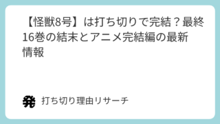 おっさん主人公カフカが怪獣に変身して戦う、ジャンプ+の看板作品『怪獣8号』。累計発行部数も凄まじい本作ですが、2025年の完結時に「打ち切りだったのではないか?」という噂がネット上を駆け巡りました。結論から申し上げますと、『怪獣8号』は打ち...