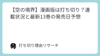 最前線 【空の境界】漫画版は打ち切り?連載状況と最新13巻の発売日予想 奈須きのこ氏による伝奇小説の金字塔『空の境界』。天空すふぃあ先生によるコミカライズ(漫画版)も高い評価を得ていますが、ネット上では「打ち切り」「完結した?」という不安な噂が囁かれています。結論から申し上げますと、漫画版『空の境界』は打ち切り... 2026.01.29 最前線