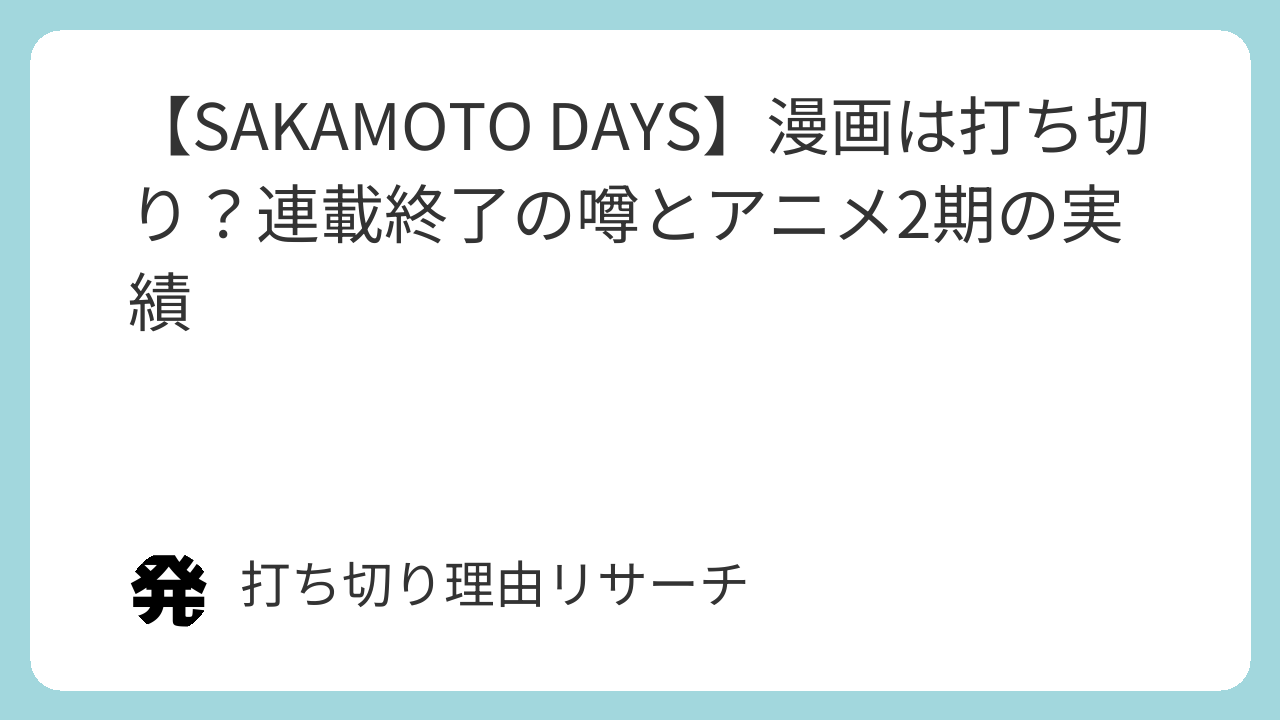 結論から申し上げますと、『SAKAMOTO DAYS』は打ち切りではなく、現在も絶好調で連載中です。